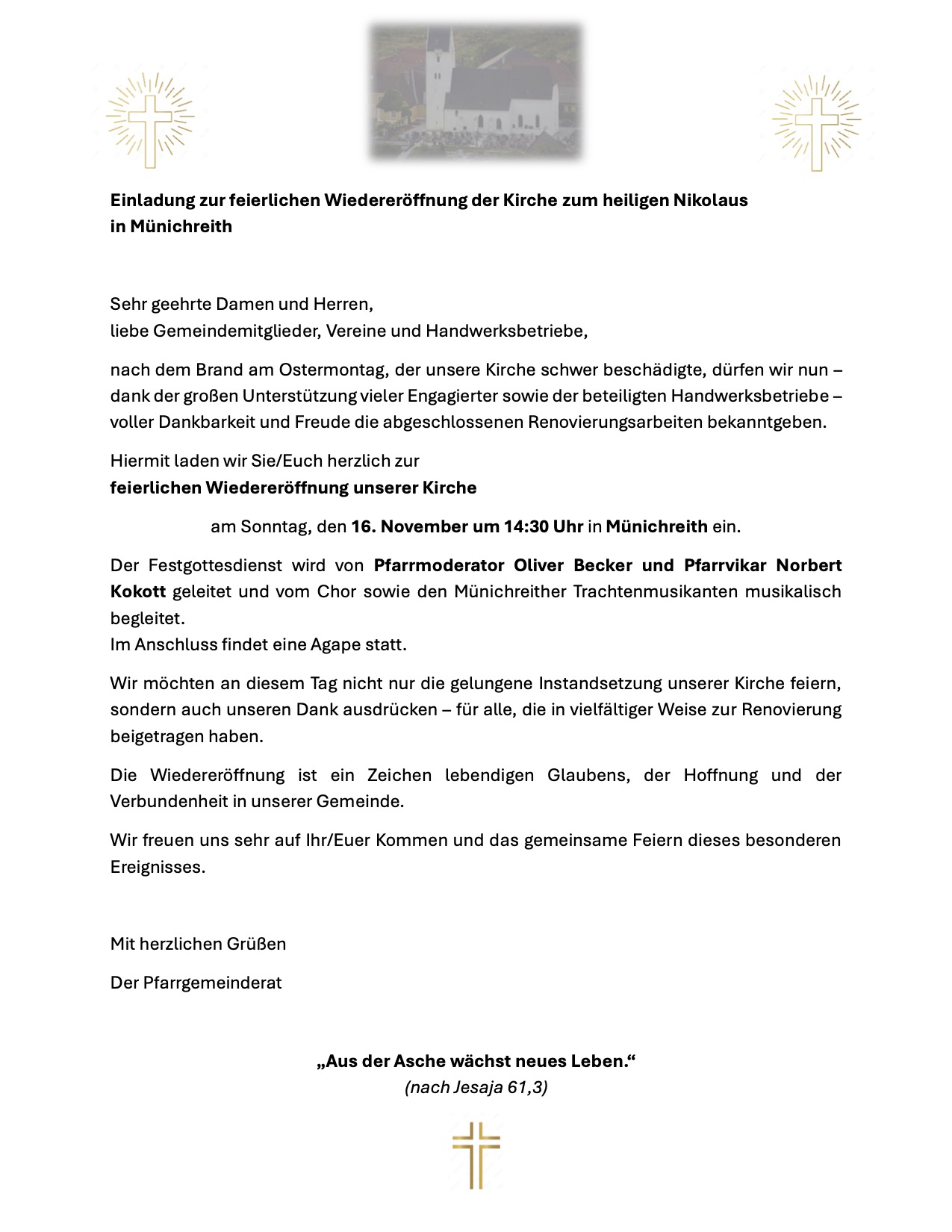 Am Pfingstsonntag durfte die Pfarrgemeinde Münichreith ein besonders stimmungsvolles Fest feiern. Die feierliche Messe wurde von Pfarrmoderator Mario ...