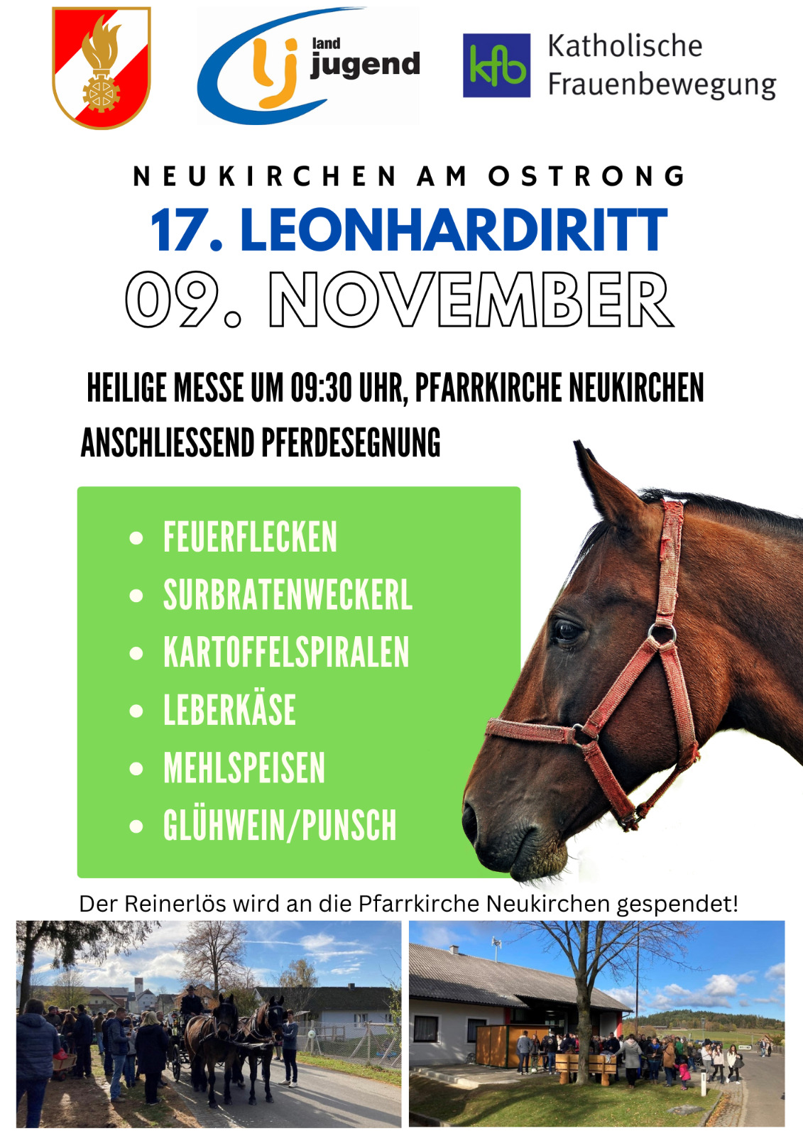 Bereits zum 17.Mal fand am Sonntag, 09.11.2025 der traditionelle Leonhardiritt mit Pferdesegnung in Neukirchen statt. 63 Pferde mit ihren Reitern und ...
