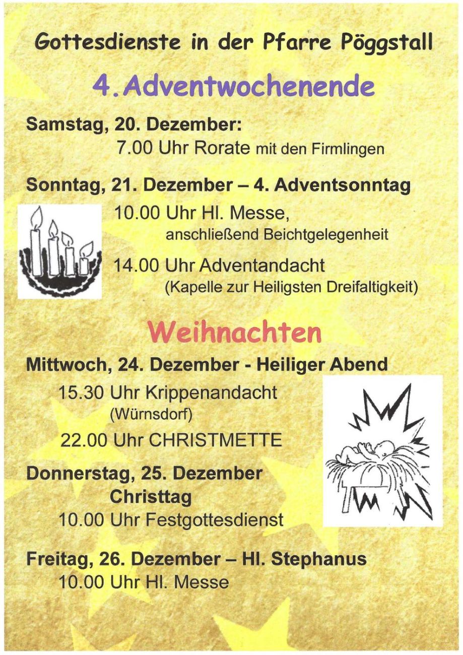 Termine für das 4. Adventwochenende und das Weihnachtsfest: